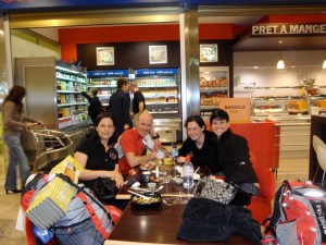 I got to the airport SUPER early – almost 4 hours before my flight – and as I was standing in the check out line I suddenly became overwhelmed by the past few days of journey and, okay fine, the tears started coming… I crumpled purely out of relief. And then all of a sudden I heard a noise behind me… IT WAS SALVADOR CALVO!!! My partner-in-crime from Racing the Planet Vietnam (the male winner and also the winner of RTP Namibia)!! I threw my arms around him and squeezed him tight, much to his, um, surprise I’m sure! I was so happy to see him. He had been writing me on facebook about how desperate he was to get out but couldn’t get a flight. BONUS!!! Ana and Lourdes (volunteer) showed up about half and hour later and we spent the next few hours chatting in spanglish. Well, they spoke in English and I chickened out trying to use Spanish. I’m not sure what we chatted about all of the time, but I did pick up ‘cajones’, which I think says it all.