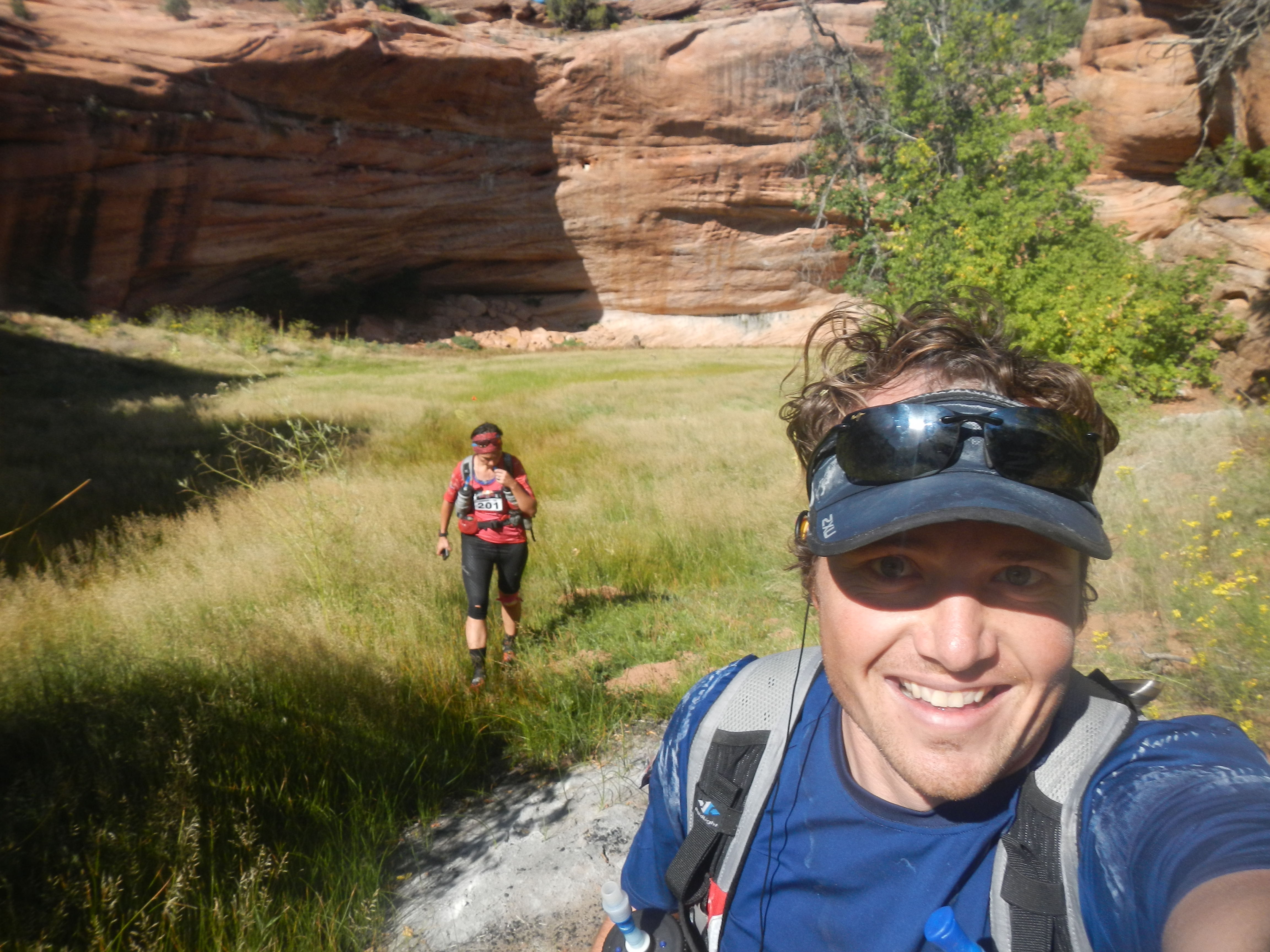 Humorously, there were so many race photographers and media personnel stationed throughout the canyon on this part of the course that running through it gave me a sense of what it might be like to be a celebrity (er, minus the scrapped knees and bum chafing – pretty sure Angelina hasn’t had to deal with that yet).  At every corner there was a new photo opportunity and a different member of the race paparazzi.  I’m pretty sure Stuart and I ruined every photo that was taken as we were constantly stuffing our cheeks with candies and chocolate, taking photos of our own, or generally readjusting our chafed body parts (awesome). Looking forward to seeing what develops, ha!