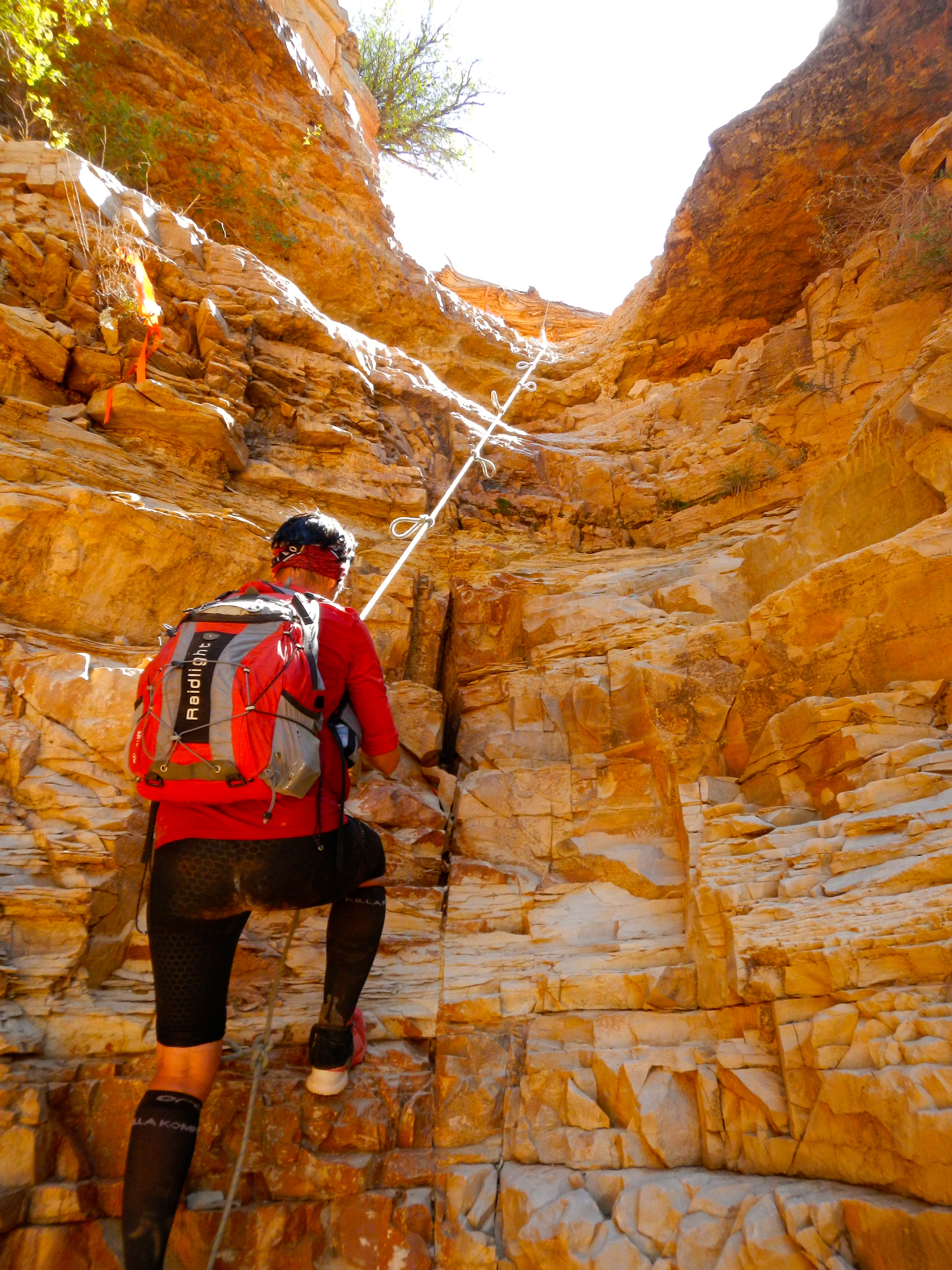 That being said, I really enjoyed the challenge of a long stage on day 3. Our packs were heavier than we were used to (again, because we hadn’t eaten as much food out of our pack as we otherwise would have had the stage been two days later). But it wasn’t as bad as I feared. We had a staggered start – the top 10-15 or so started about an hour after the rest of us slower folk, which really helped spread out the field. We took a short (15 min) truck ride to the start line, which was right at the base of a beautiful rocky climb upwards to scrubby plateau and then a sandy ATV track, which rolled up and down over the next couple of checkpoints.