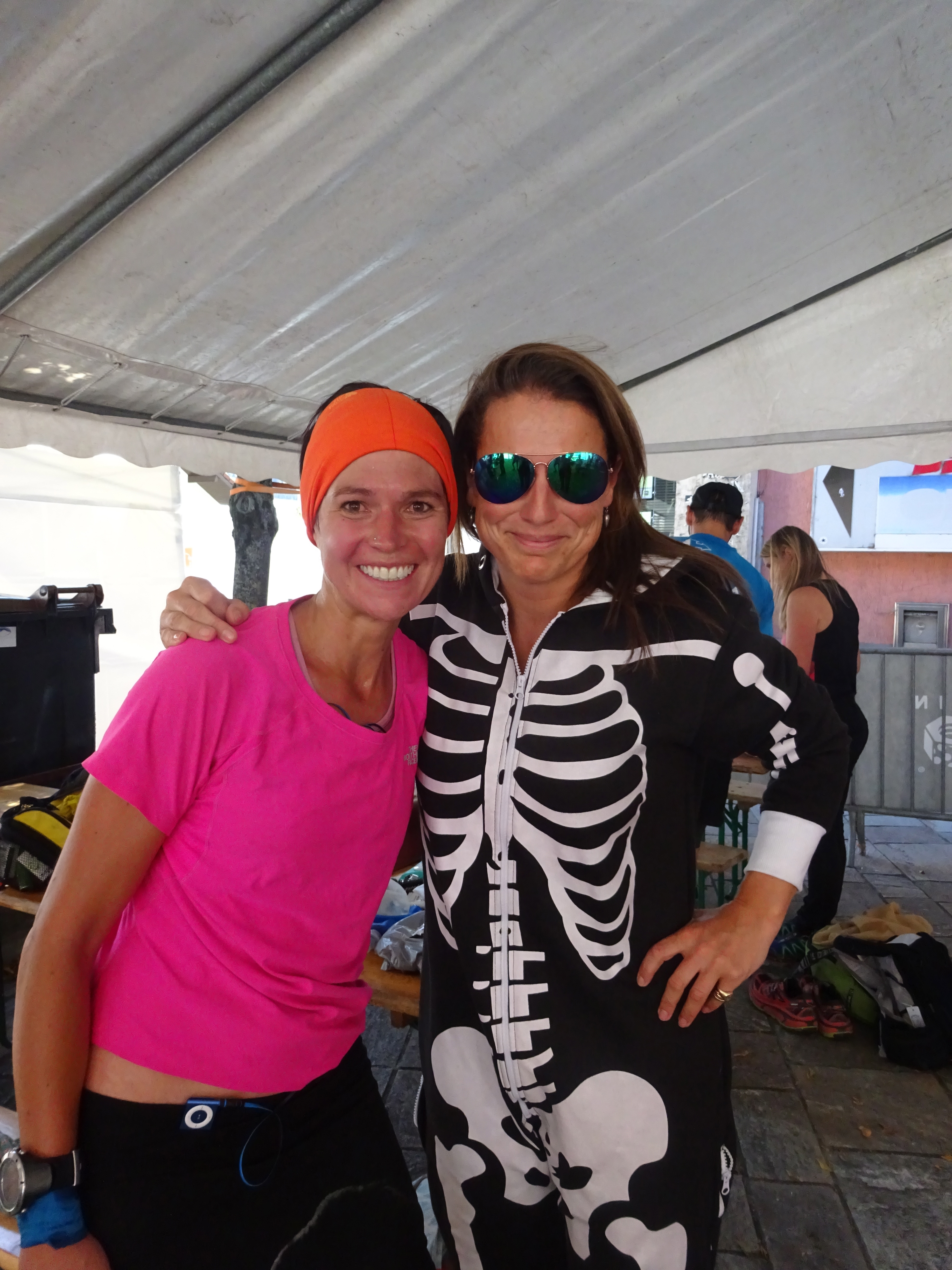 to the crowd, only to discover that it was in fact not a checkpoint. My disappointment and creeping dread at my mistake dissipated as soon as I heard someone calling my name and waving. I knew I wouldn’t be seeing my crew, Lucy, until Bourg Saint Maurice at 51km – who could it be? Amazingly, it was elite ultrarunner and Montrail athlete Amy Sproston from the US. Also known as my new bestie / platonic running crush. Amy was out supporting one of her friends and noticed me coming through. As a soon-to-be-officially-announced Free to Run ambassador, Amy and I had caught up for a beer the night before the race and she turned out to be one of the nicest, most humble runners I have ever met. I got an immediate burst of energy after seeing Amy and decided I needed to snap out of my funk and get going. Wouldn’t want to disappoint my new bestie, after all.