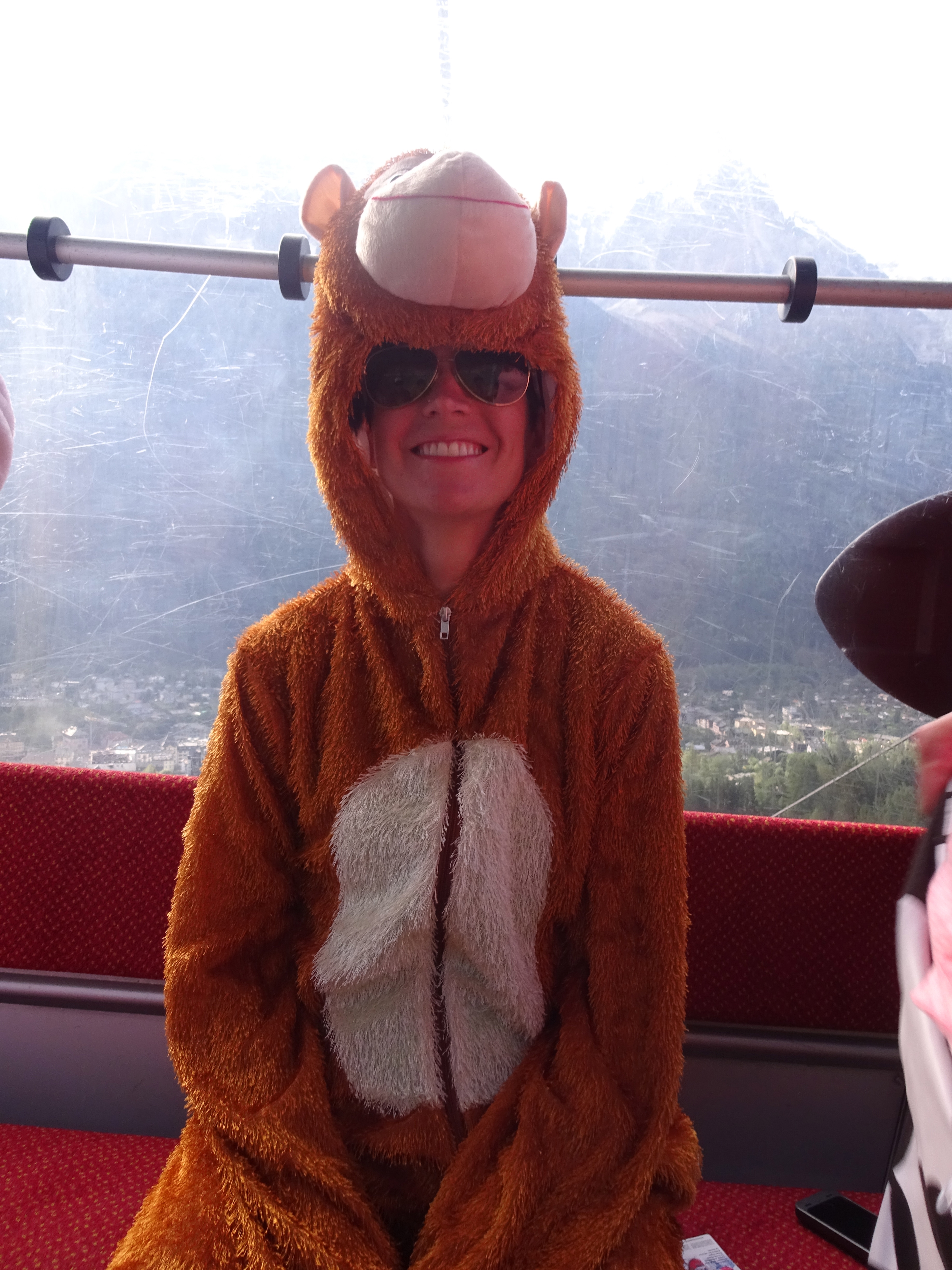 It wasn’t a good start to the race, but it was a damn good finish. The next night I got out that bottle of Veuve with some dear friends and my ‘skeleton’ crew, and we partied the night away. I ended the trip the way I began: pounding headache (from the Veuve, not the stress) and wearing a monkey onesie, this time jumping off of Brevent with a cute instructor (no troggles required) and a paraglide attached to my back. Don’t ask.